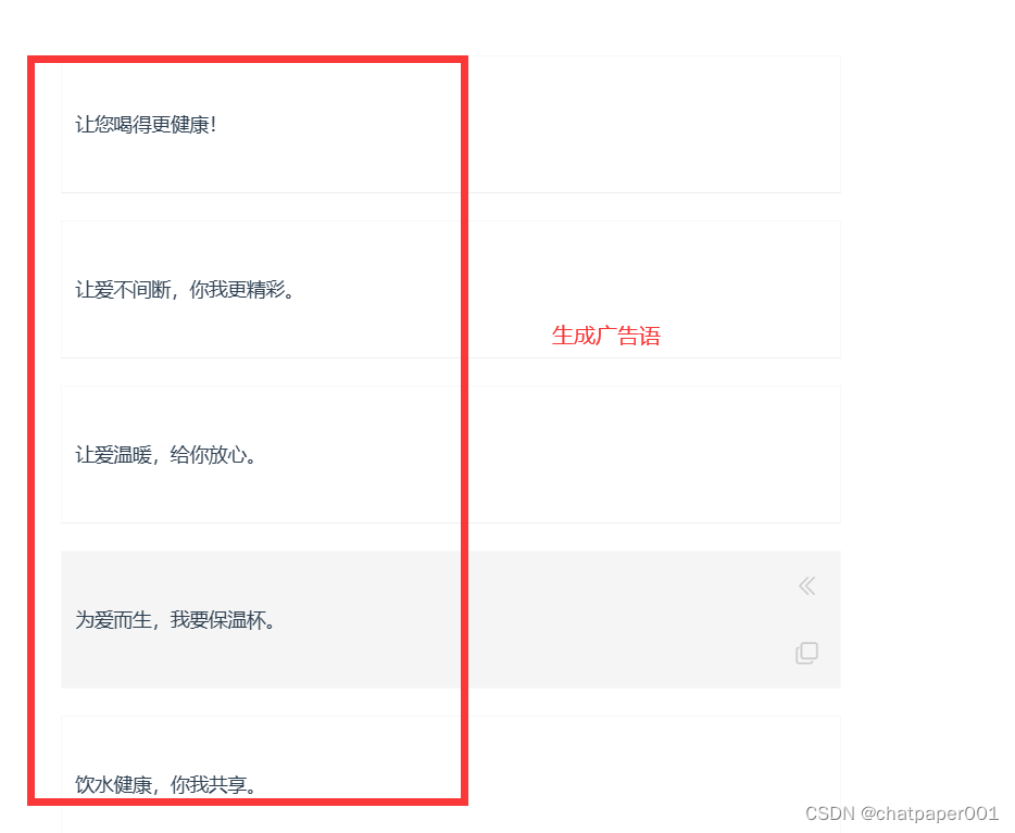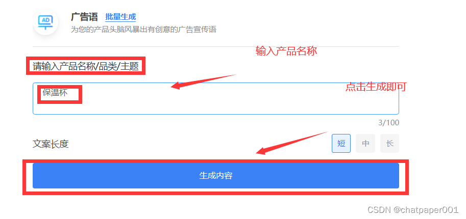 全文写作、广告语、论文灵感等多种AI模板可供选择,例如:写一条关于保温杯的广告语。