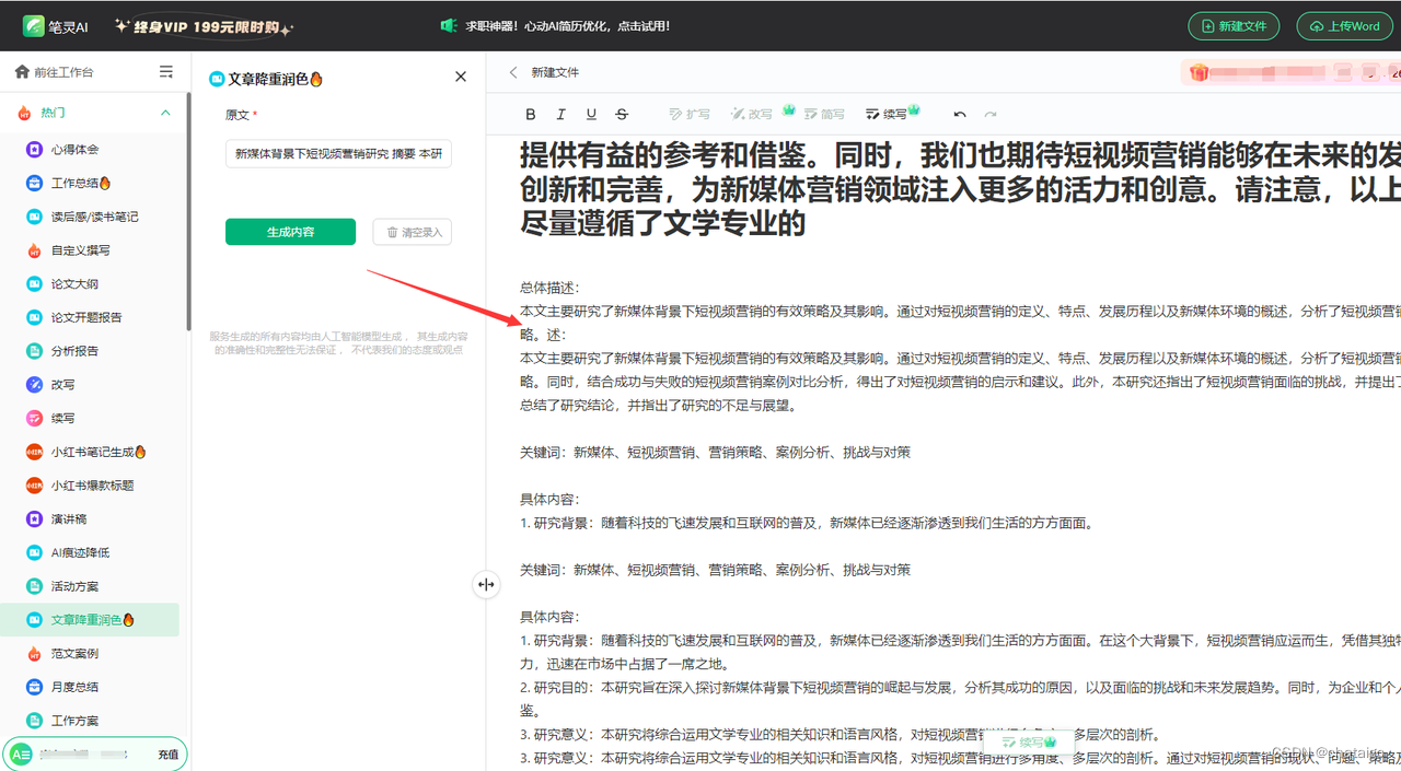 下面以新媒体背景下短视频营销研究为例,来演示一下给论文降重润色的过程。