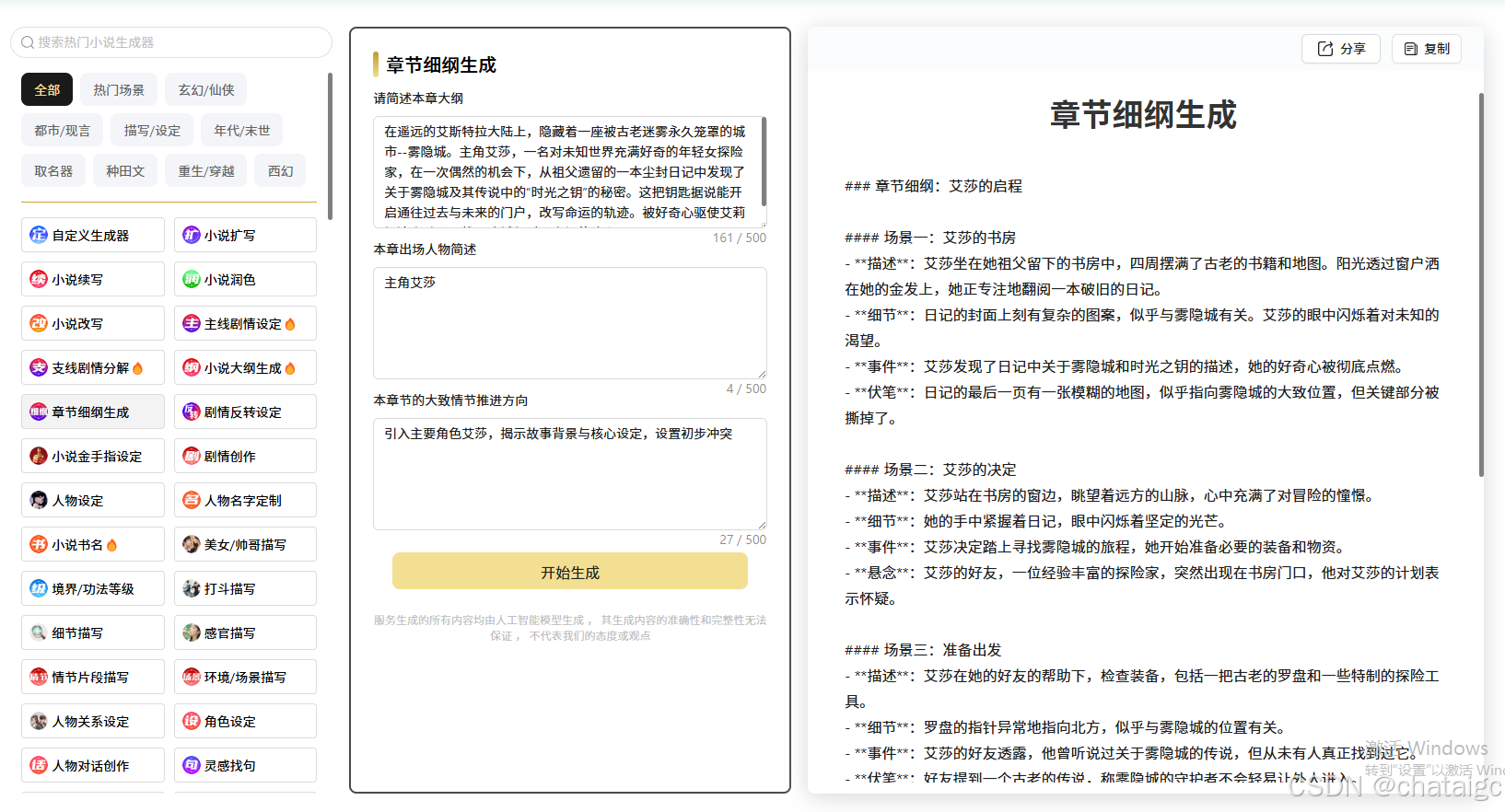 1、情节大纲一键生成