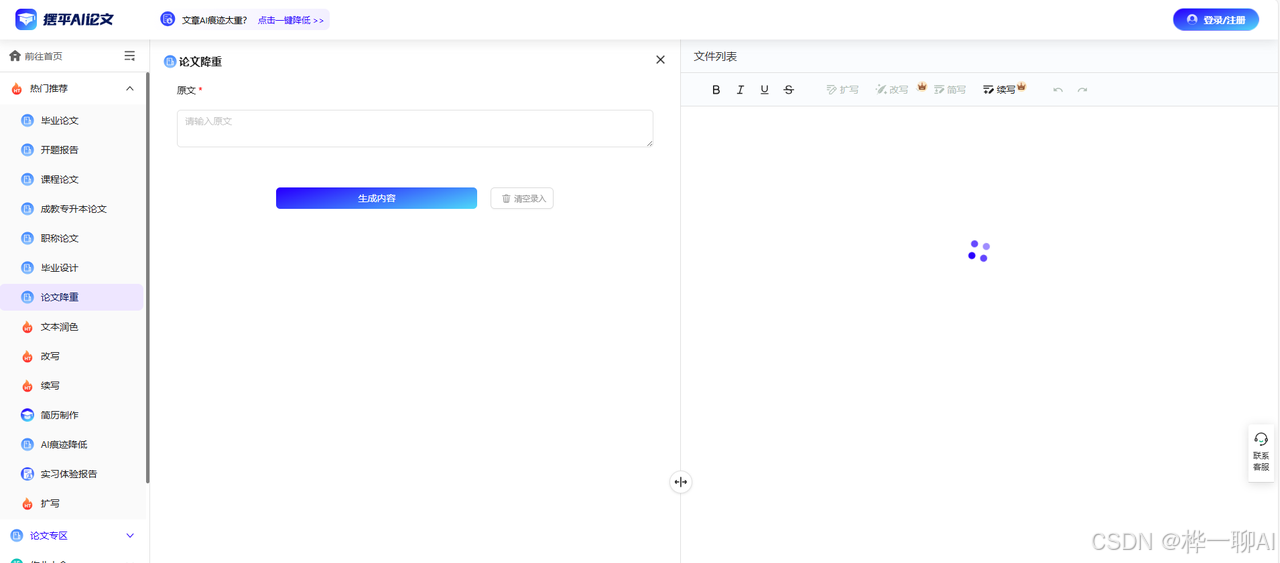 一些AI工具已经开发了专门的文章降重功能,一键降重,一步到位!这里我先以笔灵AI为例,展示一下怎么使用。