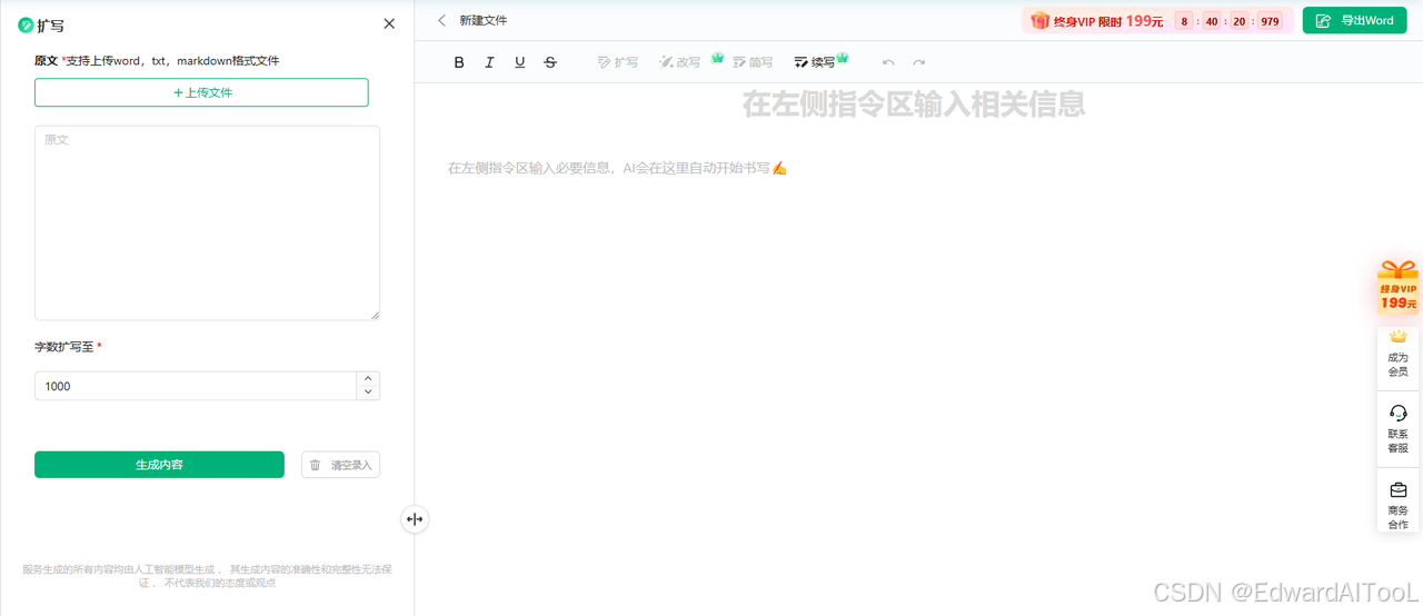 有想法但不会阐释、找不到合适的表述?用AI扩写,一键丰富表达!只需简略写出自己的想法,设定要扩写的字数,就可以得到非常丰富的表达,写论文再也不会卡在表述上了!