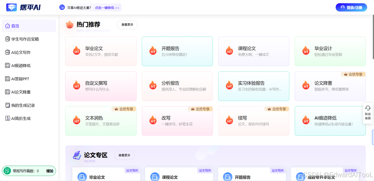 【降重利器】:在学术论文中,查重率至关重要。摆平 AI 论文的改写功能十分强大,它可以对已有内容进行优化和调整,在保持原意不变的情况下降低论文的查重率,从而提升论文的原创性和学术价值。