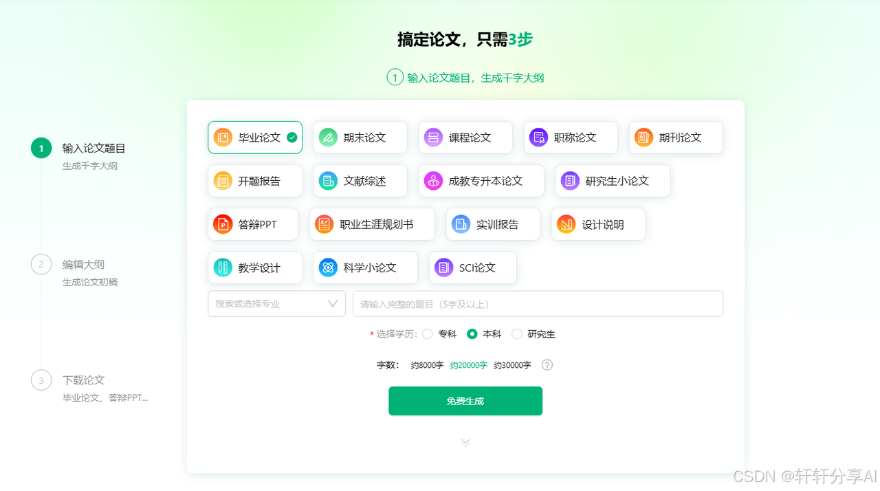 一、AI论文,一键生成初稿