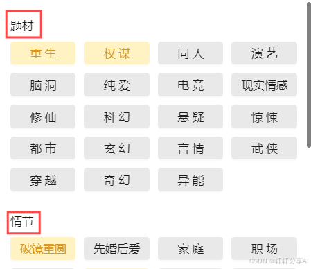 展开题材和情节的标签,即可看到大多数的标签,如果有其它标签,我们也可以自行添加,最多能添加4个标签,正确恰当的标签可以让其生成的内容更符合我们的要求。