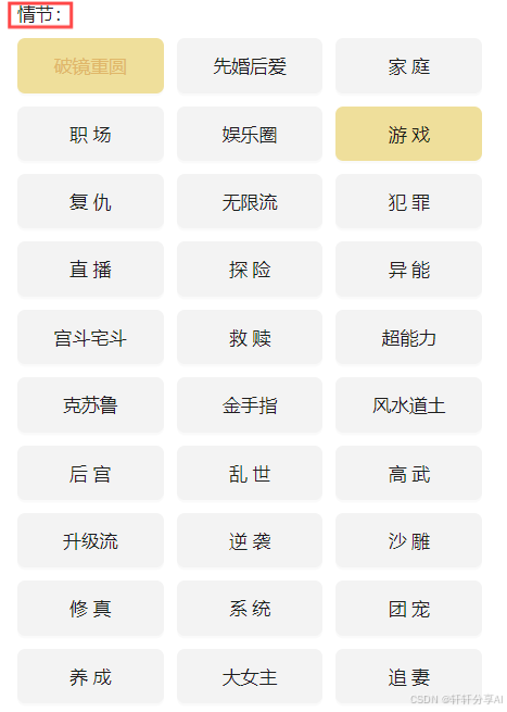 可以看到小说的题材、情节标签和小说编辑大纲的标签相同,可以帮助我们便捷生成相同类型、风格的内容。