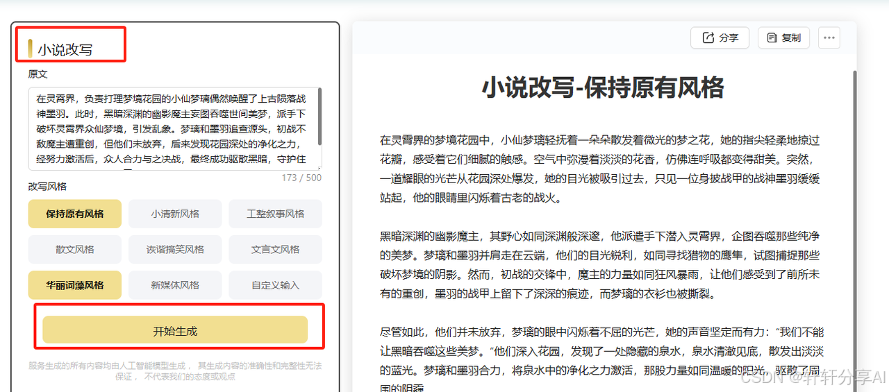点击【生成】,会在右侧「预览」中生成新故事预览。生成的新故事如下: