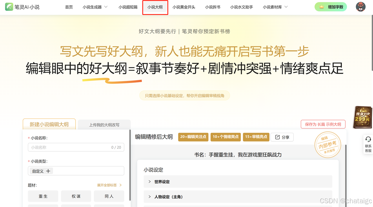 除此之外,笔灵AI具有语言润色,小说续写以及小说大纲生产等功能,帮助你轻松把握小说走向和剧情内容,驾驭语言特色和文笔风格。