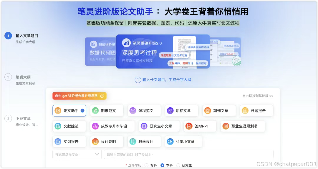 直达链接:笔灵进阶版论文助手 - AI智能写论文,助你高效创作 | 笔灵AI写作