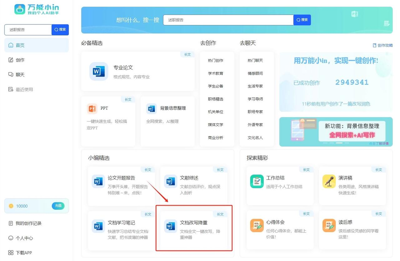 万能小in的降重功能可谓是论文降重的得力助手,有着诸多突出特点。
