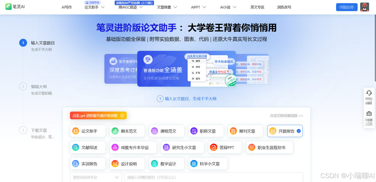凌晨三点对着空白文档发呆?试试笔灵AI进阶版论文。它最牛的地方是能一键生成论文大纲、论文初稿甚至五种样式的图标。操作也特简单,选专业、输标题,千字大纲和万字初稿立马蹦出来。