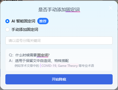 在其他一些降AI工具使用体验中,经常会发现,它把一些专业术语替换成了一长串复杂的解释,而笔灵AI独创了【固定词锁定功能】,类似"random forest""confidence level"等专业词都不会修改,而是保留固定。除了留住专业词,它还能优化升级口语化的表达,学术感蹭蹭蹭地上涨!