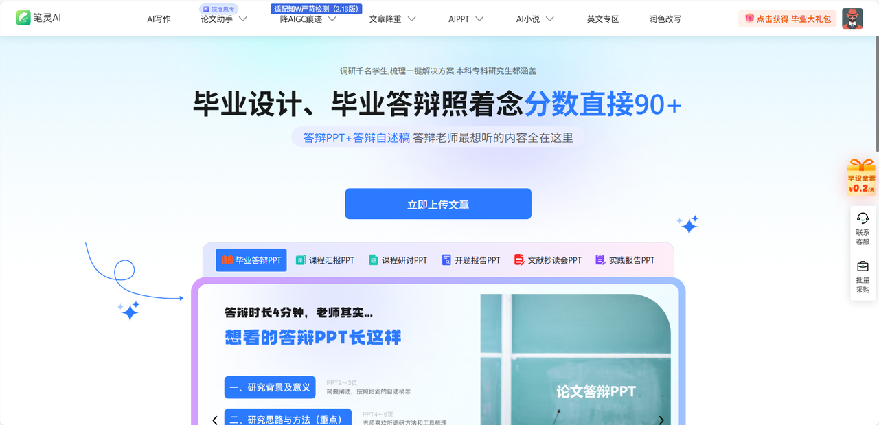 说了这么多,有没有觉得制作答辩PPT还是有点麻烦?别担心,现在有了AI工具的帮助,制作PPT变得轻松又简单!在这里给大家推荐一款超好用的AI工具——笔灵AI(https://ibiling.cn/ppt?from=csdnmanjppt)。