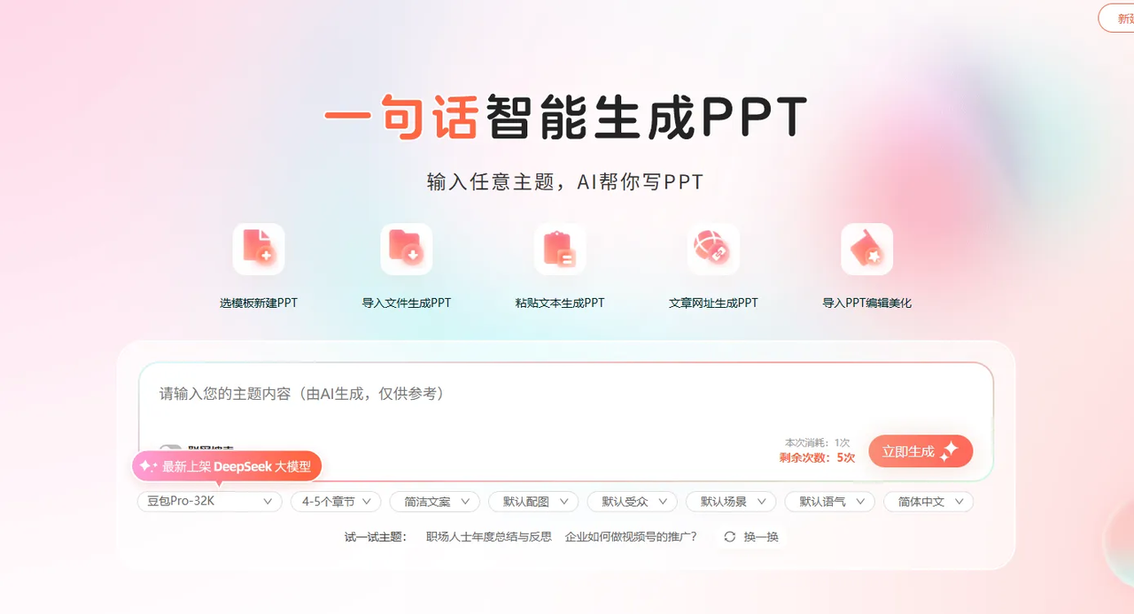 每天有5次免费生成额度,适合想反复优化的同学。