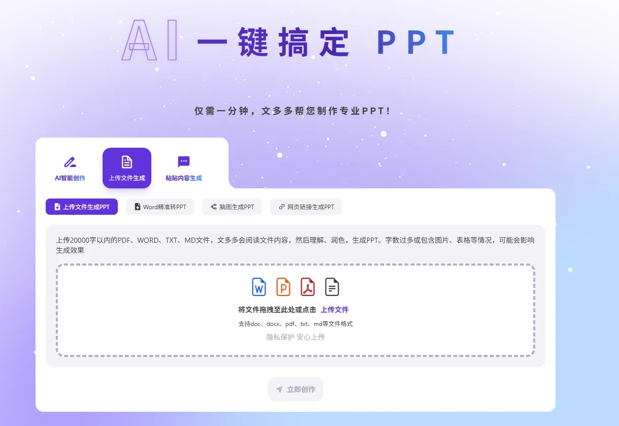 支持5万字文档直接上传,自动提取背景、方法、结论。