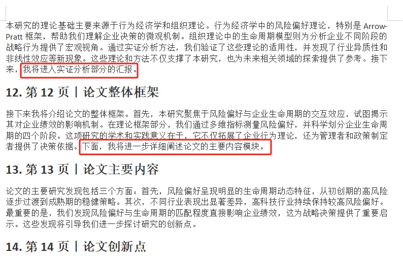 生成的答辩PPT自带逐字稿,衔接自然,连翻页时机都标好了。