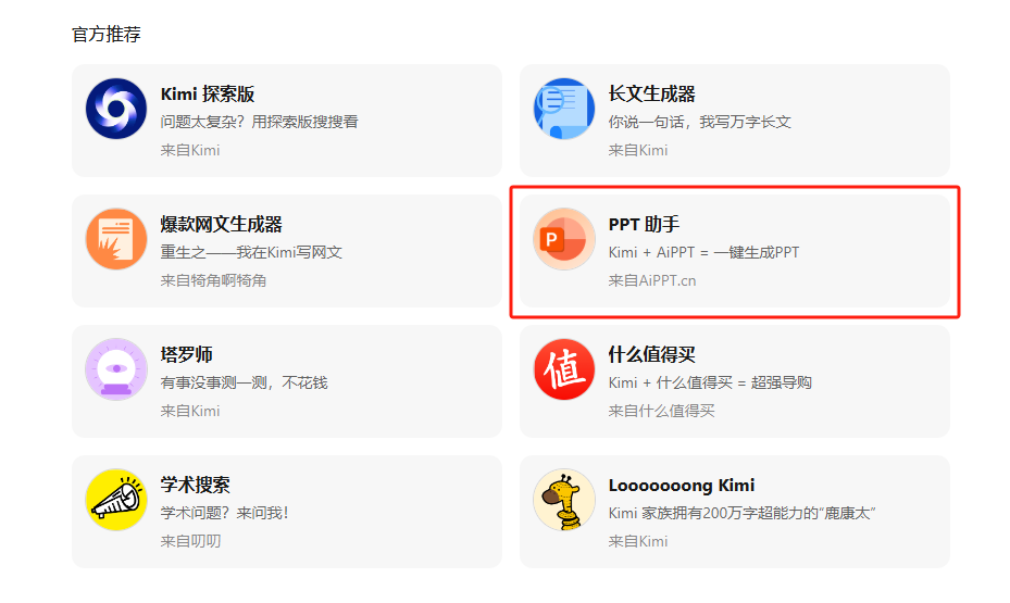 打开Kimi+,找到“PPT助手”功能;