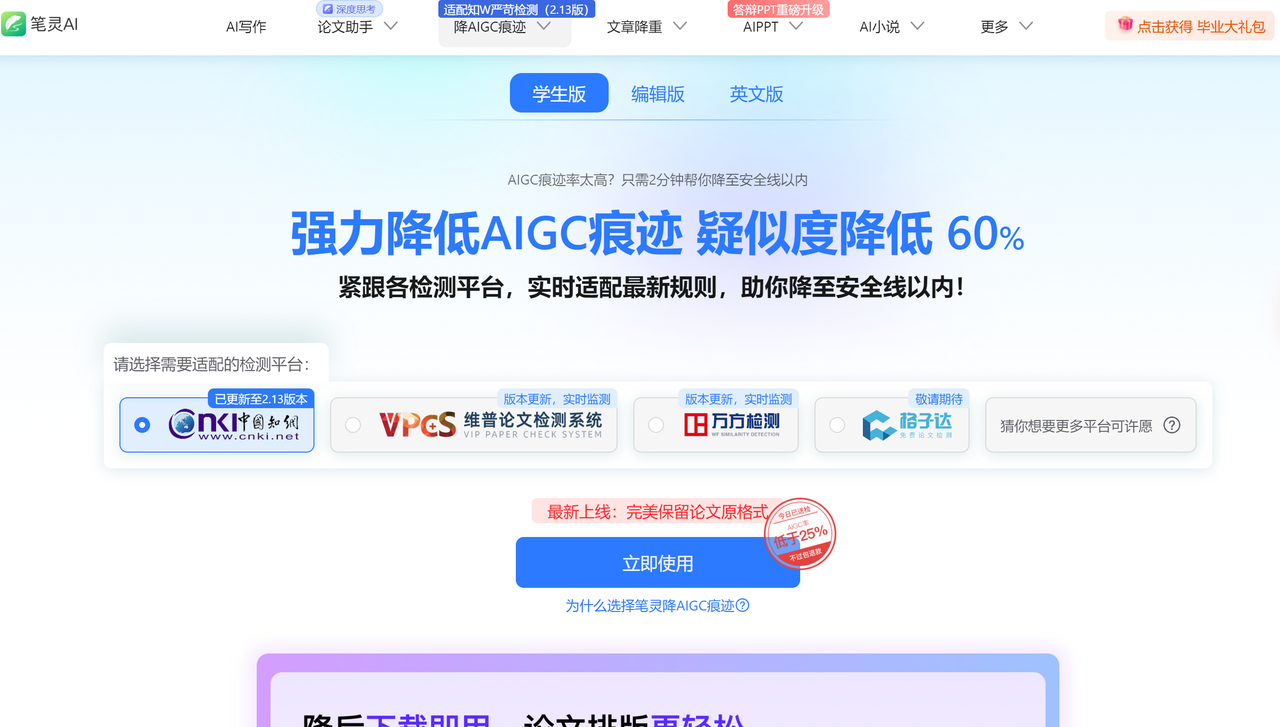 手动修改虽然效果好,但确实费时间。所以可以试试降AI率工具,比如笔灵的降AI功能: