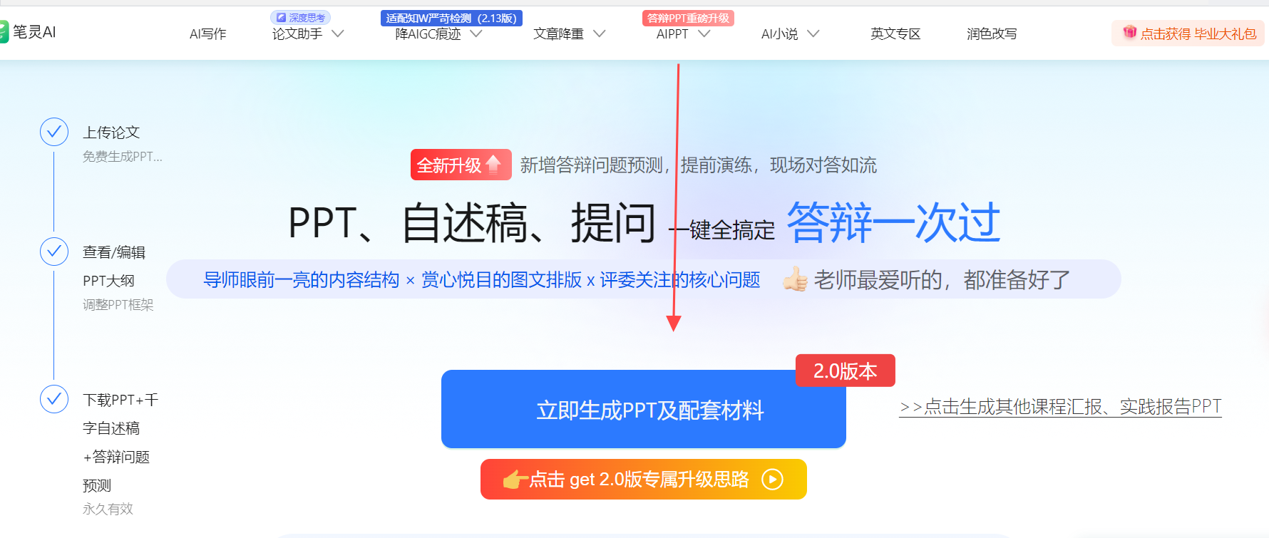 懒人/学术党:闭眼选笔灵AI。**毕业答辩PPT怎么做**?一键生成内容+自述稿,格式直接过审。