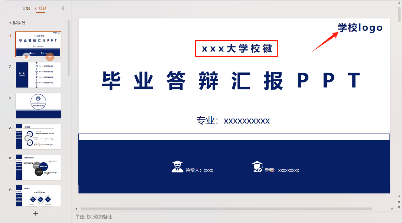 字体永远用宋体+微软雅黑,字号严格按学校要求。页脚自动加校徽,配色全是莫兰迪色系。导师看到直接夸:"这才叫专业PPT!"