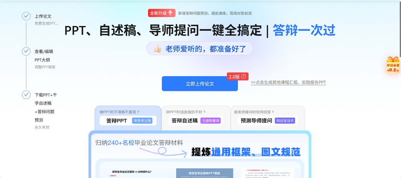 3分钟出稿:上传论文提取重点内容,直接生成完整PPT。