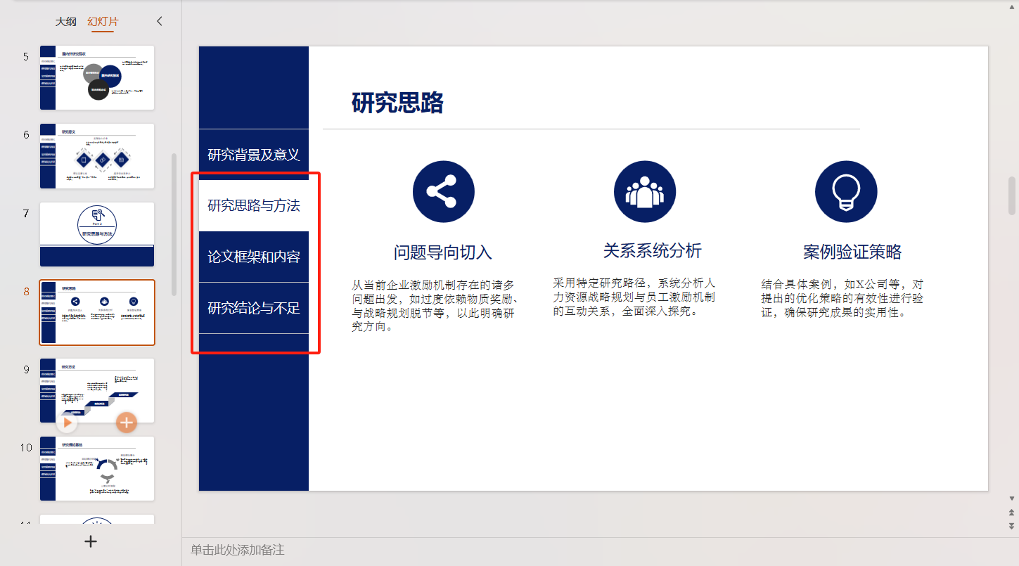 目录不用照搬论文结构。关键是让老师一听就懂你的思路。推荐在每页PPT上加导航栏,固定在左侧最方便。