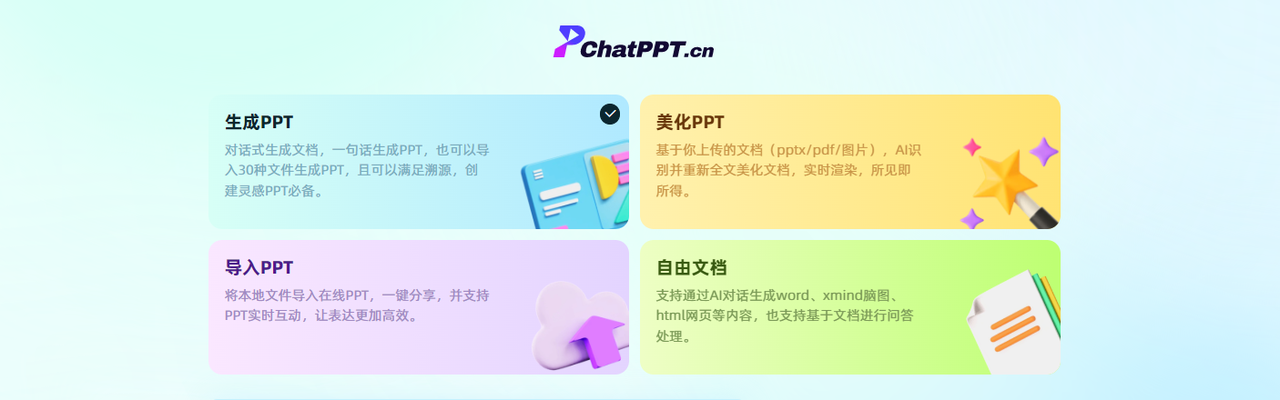 ChatPPT主打PPT优化,适合已有初稿但想提升质感的情况。它支持文件格式多,能一键调整字体、配色。不过它的**答辩ppt生成**功能较弱,没有学科分类模板,**答辩ppt怎么做**这类细节问题还得靠自己琢磨。
