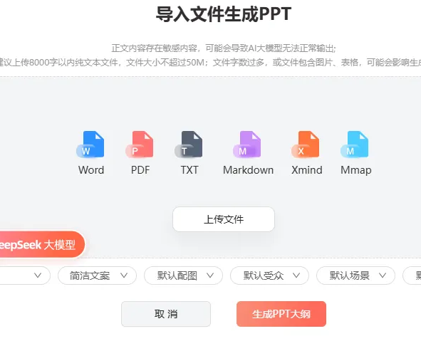 比格PPT全新升级**答辩PPT生成**功能,三步搞定设计难题!上传论文或开题报告(支持Word/PDF),AI大模型智能分析内容重点,自动生成逻辑框架+学术风模板。