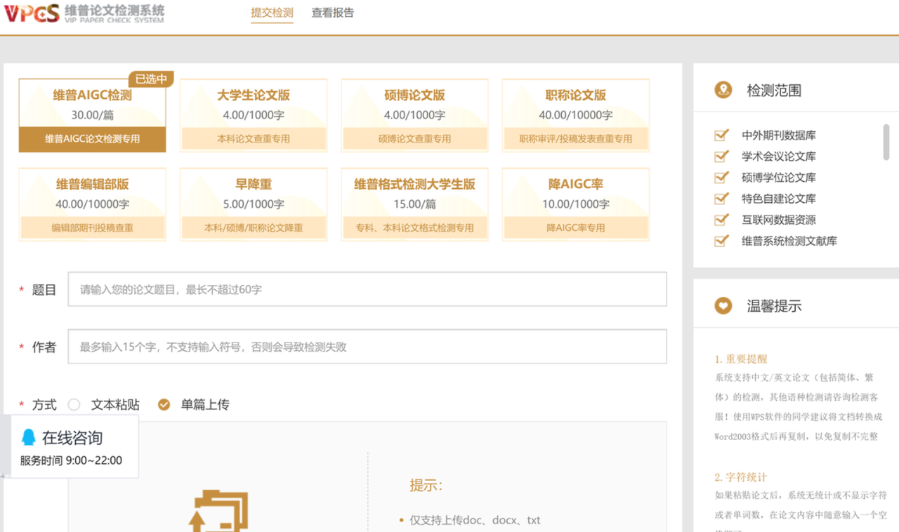 3. 维普论文检测系统