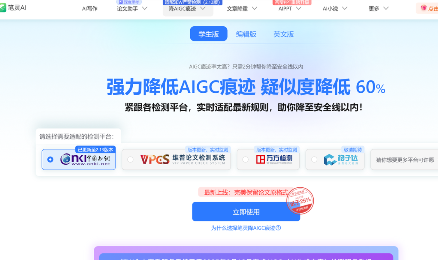 如果时间紧任务重,直接用笔灵降AI工具,省时省力。记住,降AI不是去掉AI的痕迹,而是让论文更符合“人写”的风格。照着这份攻略改,你的论文一定能过关!