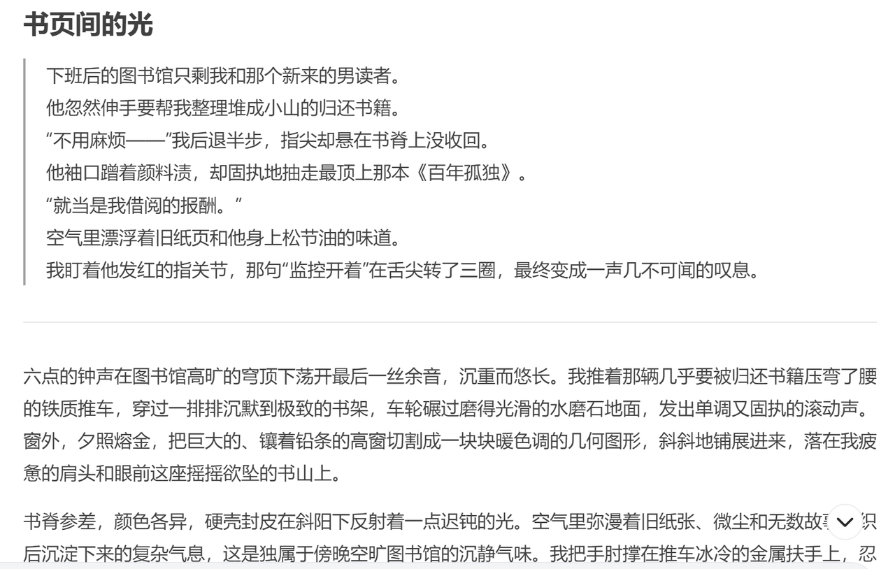 三章以内表现出色 Claude在处理短篇内容时,能快速生成逻辑清晰、语言流畅的故事。无论是情节推进还是人物塑造,它的表现都非常自然,甚至可以媲美一些成熟的网络作者。