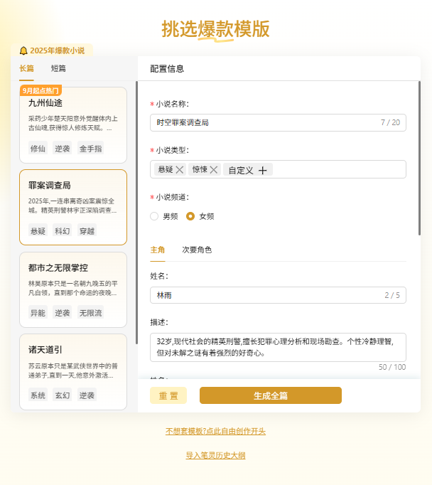 ▍一、笔灵:完整小说大纲的速成帮手