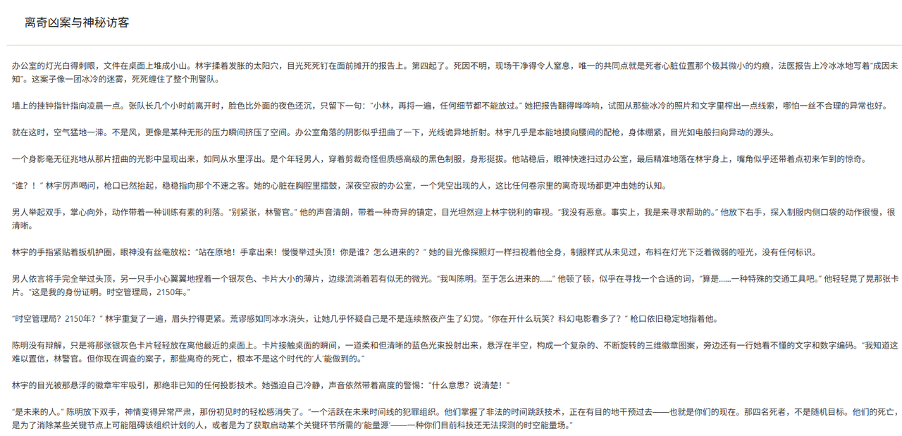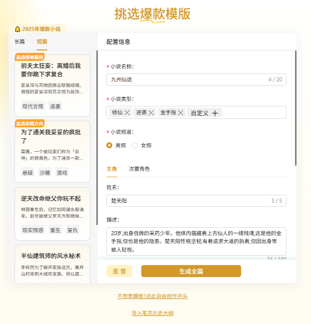 ▶ 终极武器:笔灵(传送门同上) 它的AI写全篇小说功能是我的救场神器。上周写末世题材卡在第三章,我把人设和关键冲突输进去: “主角:病毒学女博士;核心矛盾:救命疫苗需牺牲她感染的女儿” 十分钟后收到