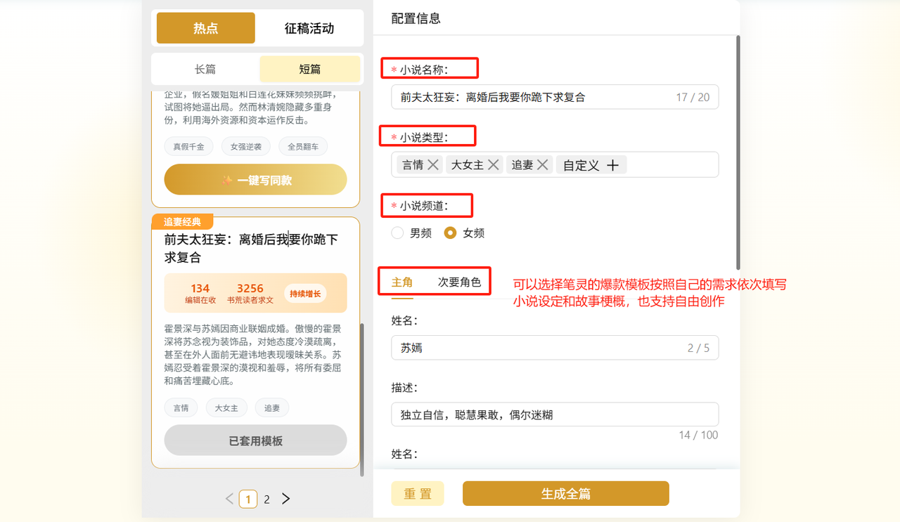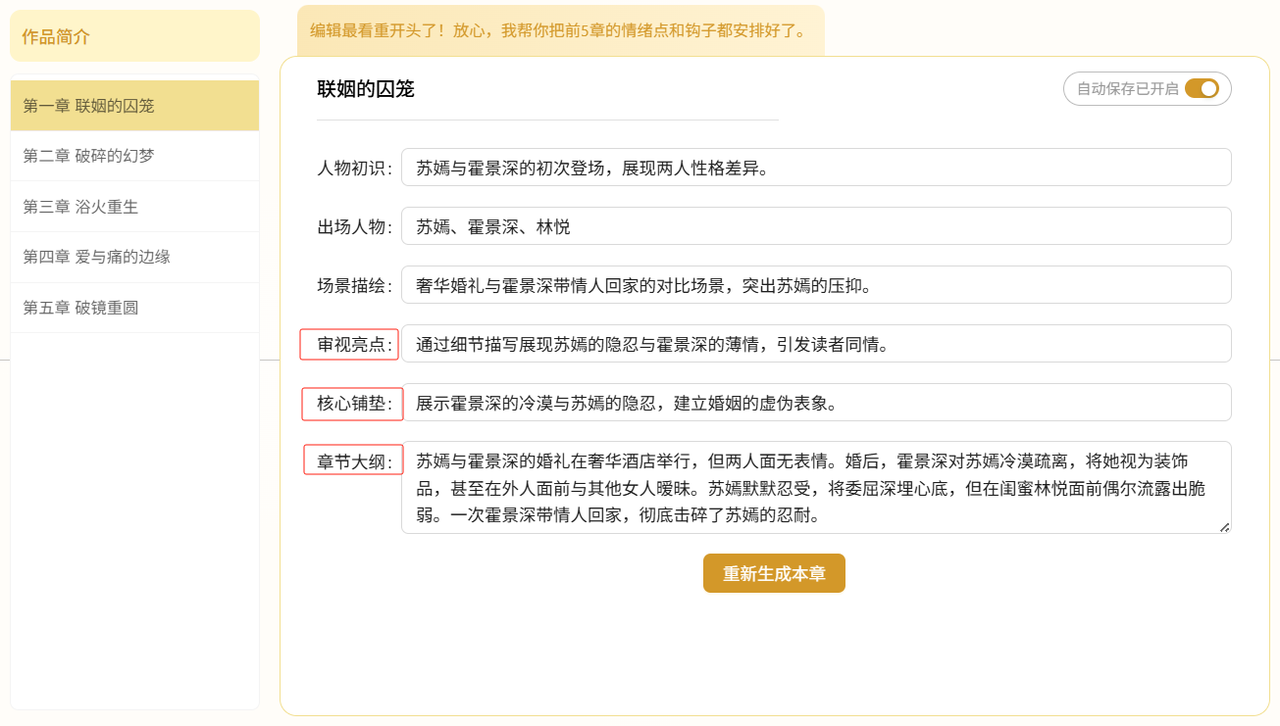 新人最怕的就是开头没抓住编辑,这个功能直接帮你生成可投试稿的完整第一章,再配合人工优化,能大幅提升签约成功率。