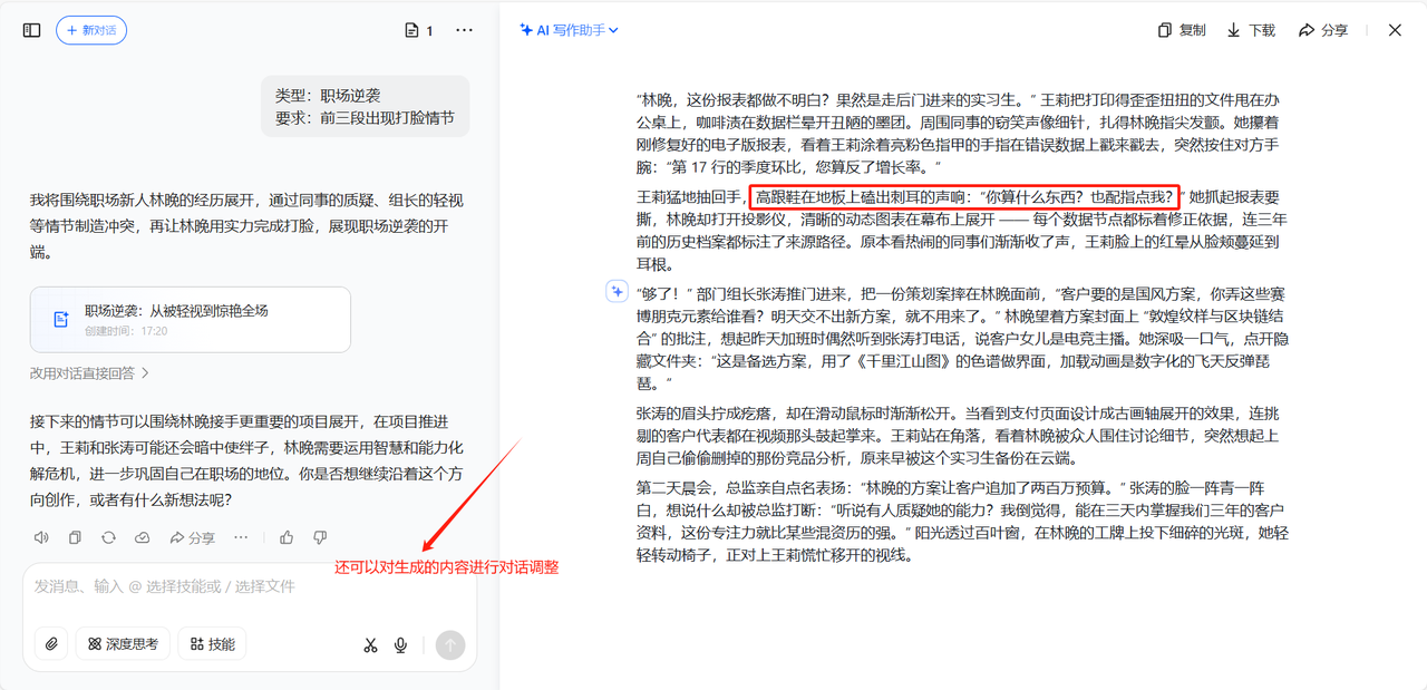 爽文题材的编辑看重“抓人眼球”的爆点,豆包AI能帮你在开头就塞进冲突和反转,直接提高试稿完读率和签约可能性。