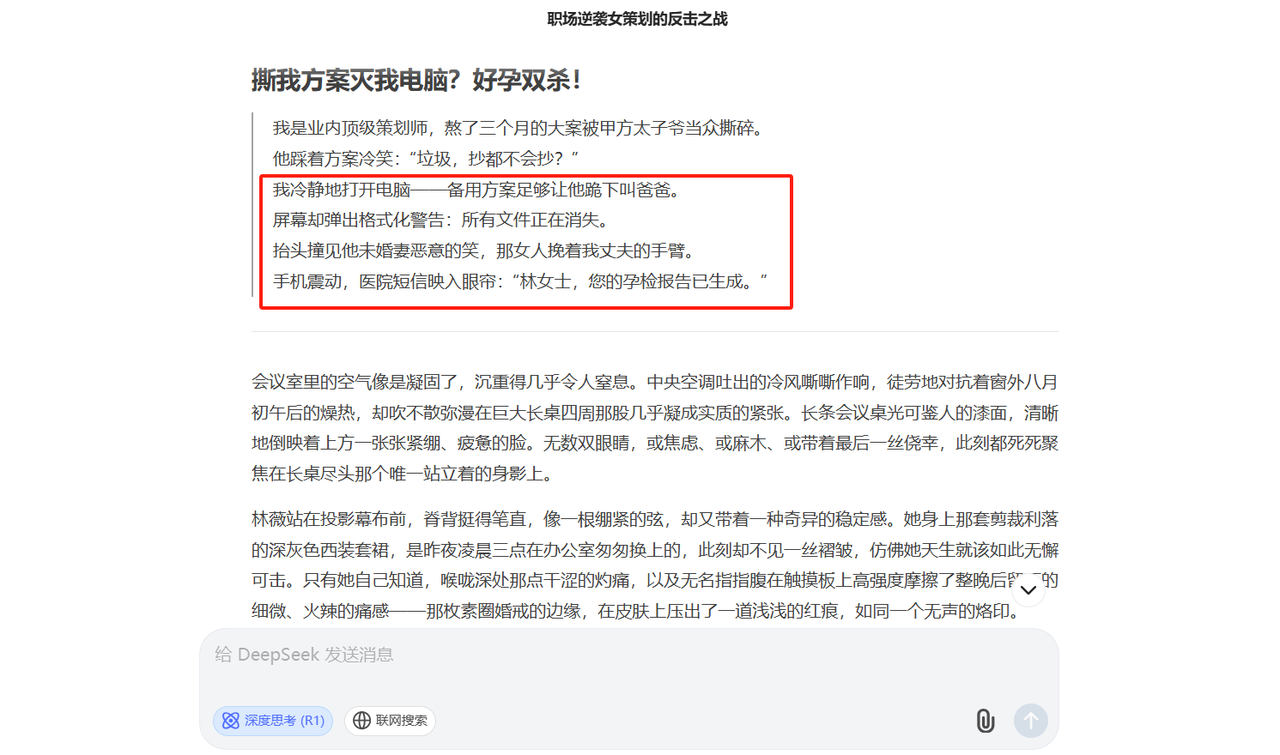 如果你开头总写崩,DeepSeek能帮你先把整体结构定死,避免剧情跑偏,提升平台编辑对你作品的信任度,更容易通过试稿审核。