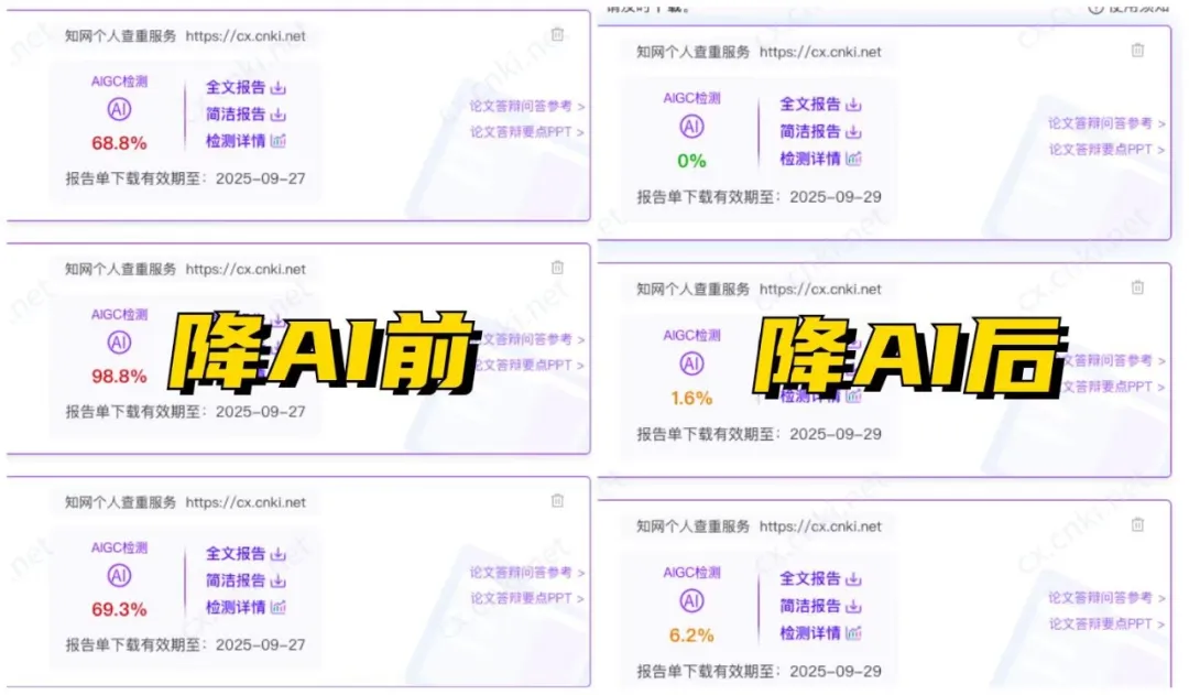 💡 这里放一张对比效果图:(左边是降AI前的AI率截图,右边是用笔灵AI后的AI率截图)