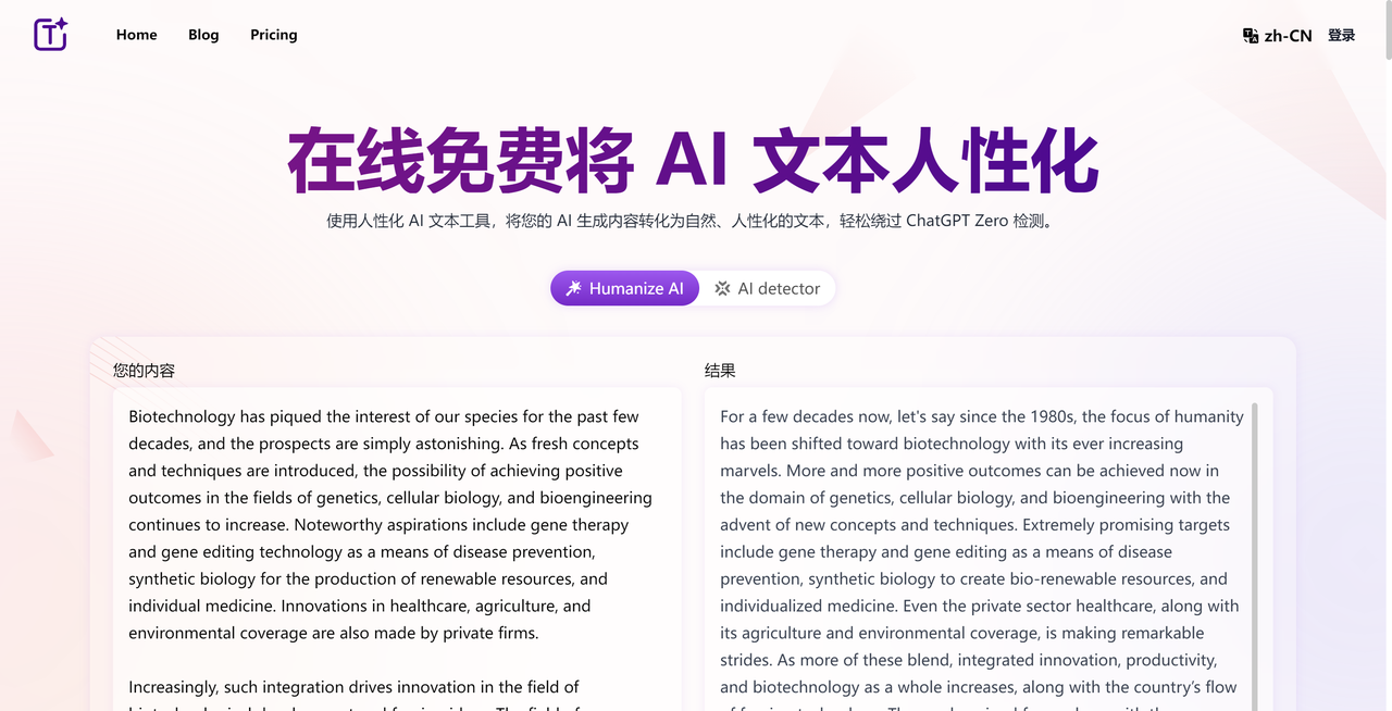 我试过几次,有时候系统会卡住,体验感一般。还有个Humanize.im,界面跟它几乎一样,怀疑是同源。