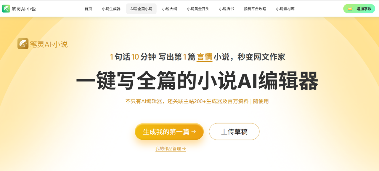笔灵AI:直接一整本小说都能给你跑出来,适合当写作起点