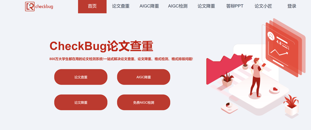 四、CheckBug —— 支持中英文的双语论文降AI神器(推荐指数:★★★★☆)