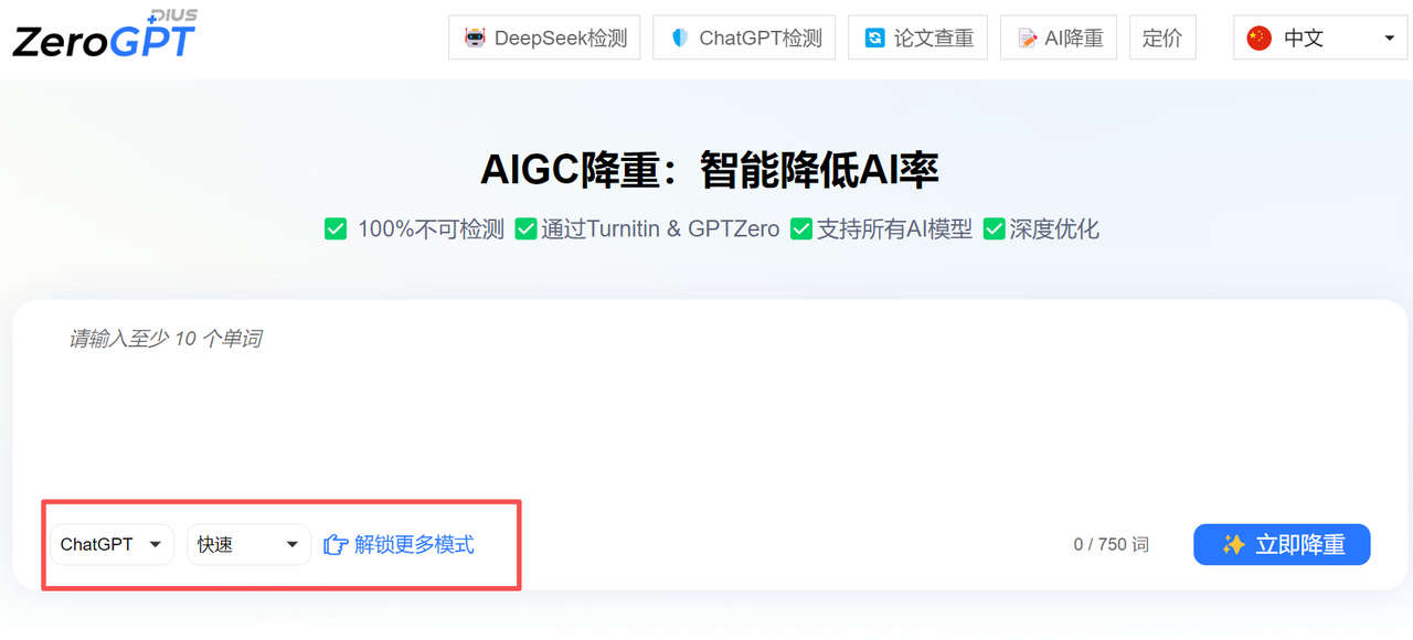 4、ZeroGPT:智能降低论文AI率,能够深度优化