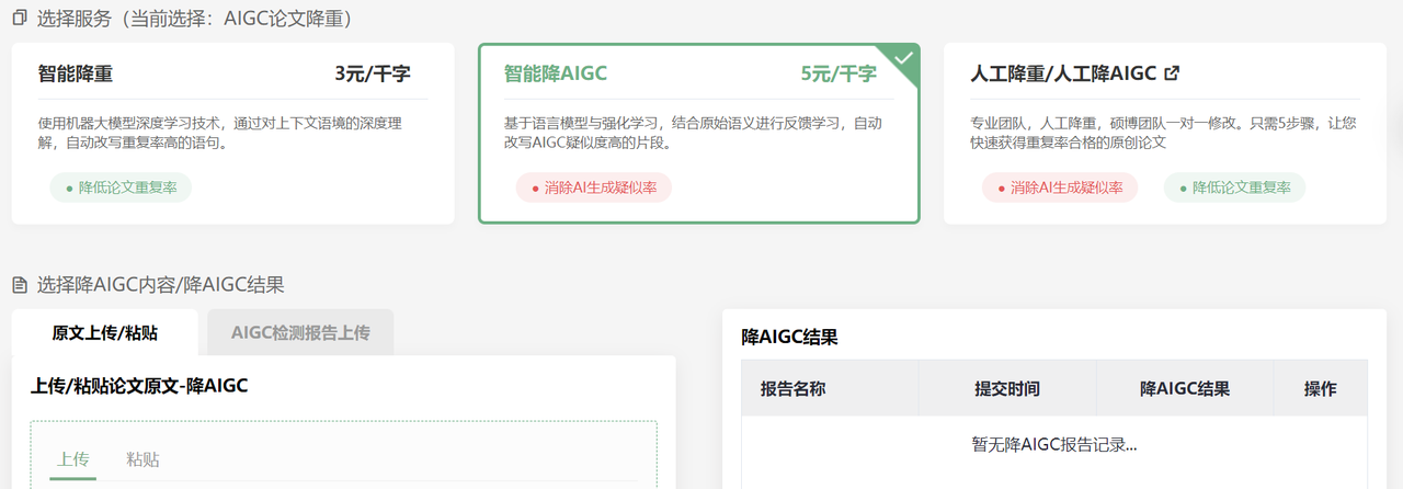 降AIGC的价格也是每千字五元,属于价格偏高的那一档,适合预算比较充足的同学。