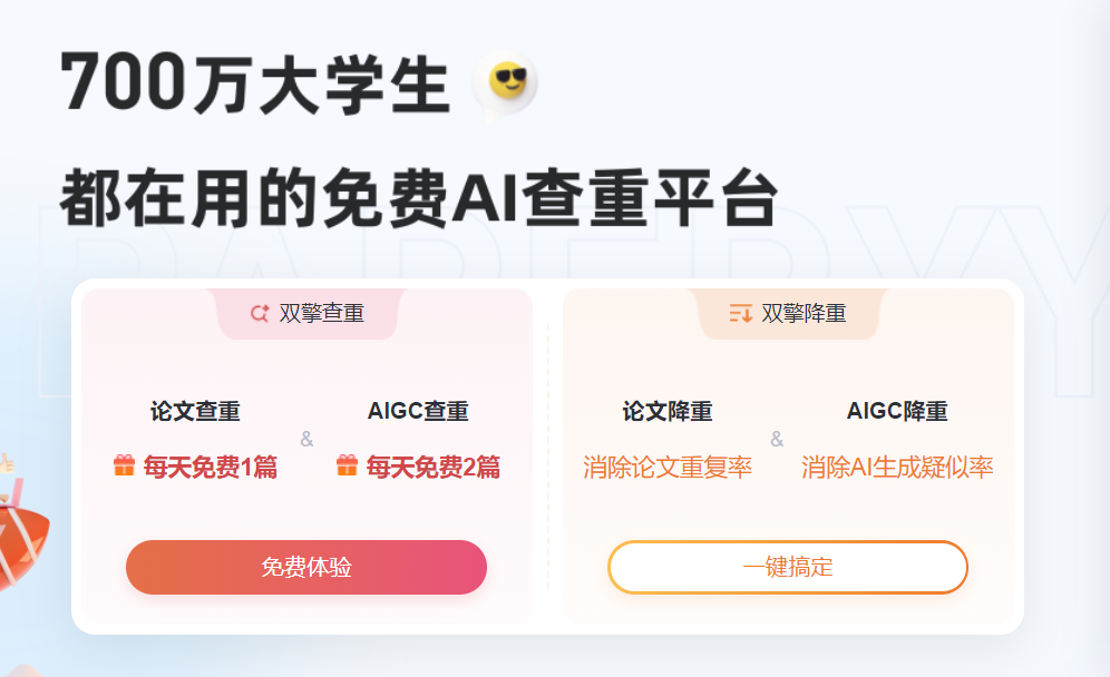 PaperPass很多人应该都听过,不少同学查重时都会用它,它每天能检测五篇,这点对学生挺友好的。
