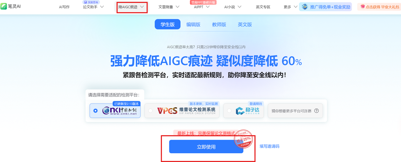 最重要的是,笔灵AI支持知网、维普和万方三大平台的检测,实时更新检测算法,确保无论是降AI还是检测都不会掉链子。如果降后的AI率仍然不达标,客服会提供退款或再次降AI的服务,真的是让人安心。
