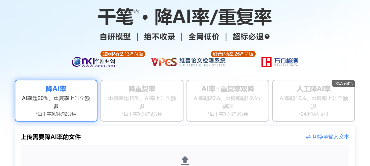 千笔AI最大的卖点是"效果承诺"机制,这个特点吸引了不少用户关注。针对知网、维普等主流检测平台,千笔AI承诺如果处理后的AI率仍然超过20%,可以申请退费。需要注意的地方:处理后的文档格式可能需要进行二次调整,格式保留功能不如一些专业工具完善,这点需要预留时间处理。