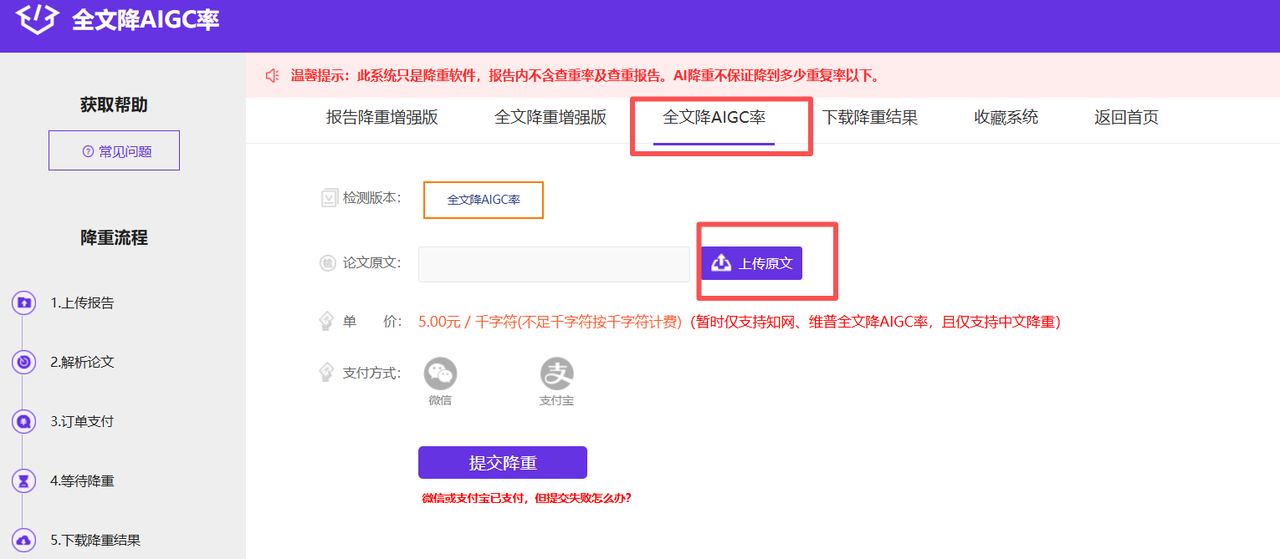 大雅论文作为老牌查重工具,最近也推出了降AI功能。