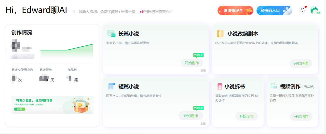 实测体验: 蛙蛙给我的感觉是“稳”。基础功能很稳定,人设生成器和章节续写,输出质量比较均衡,不会“忽高忽低”。适合喜欢稳定输出的作者。