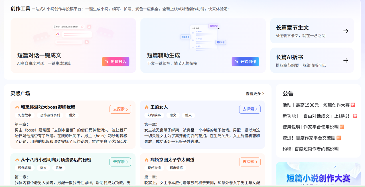 百度“亲儿子”,背靠平台,资源和 小说的素材 最多。