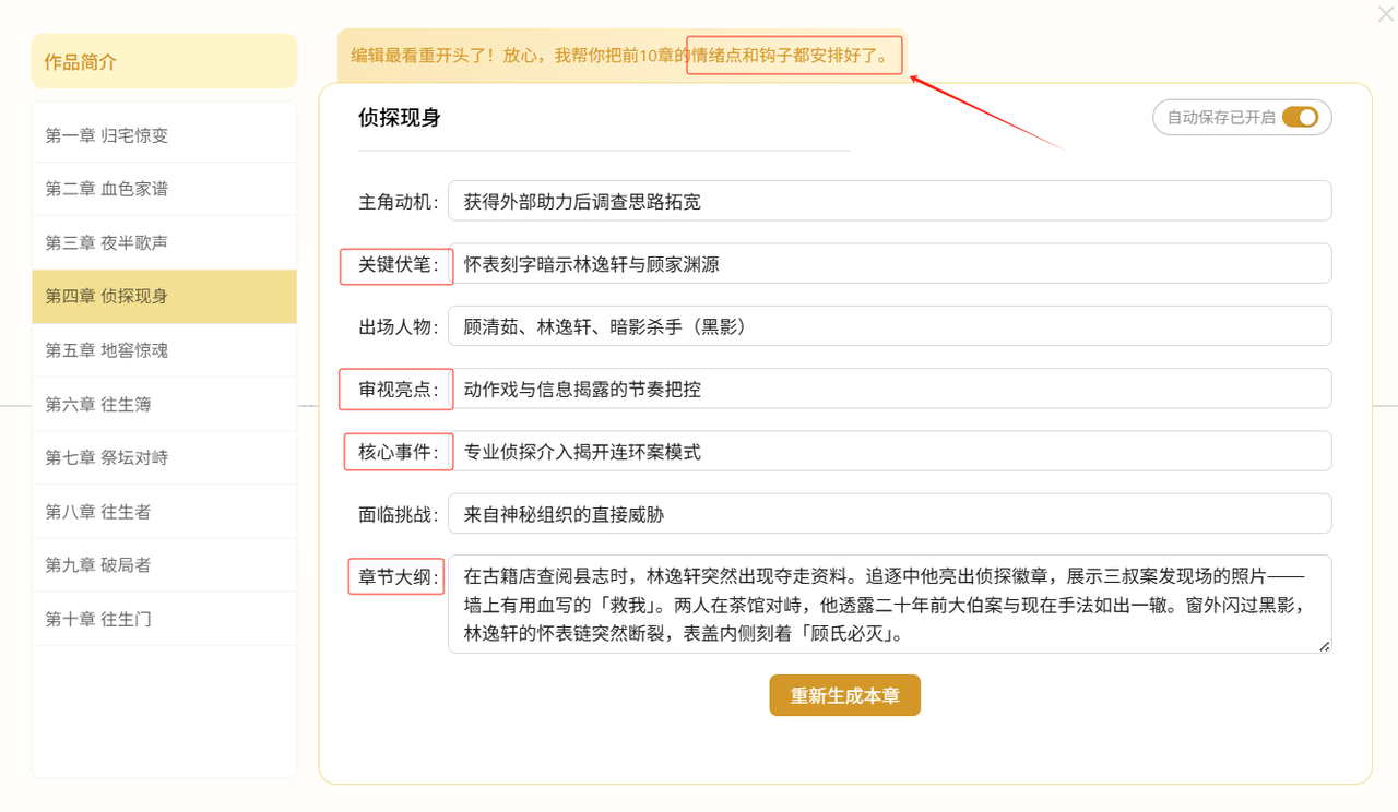 实测体验: 优势在于“数据”。AI续写会参考“平台爆款”,网感强。如果你主攻百度系平台,用它没错。自带的 小说的素材 库很方便,缺点是“定制化”不高。
