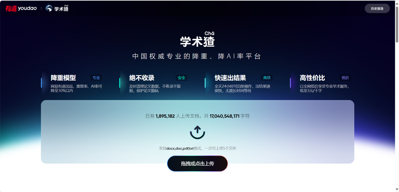 这几点我确实感受到了。另外,它说自己针对知网、维普、万方做了升级,这个我无法验证,但从下降幅度上看确实比大多数“免费降低ai率”工具靠谱。
