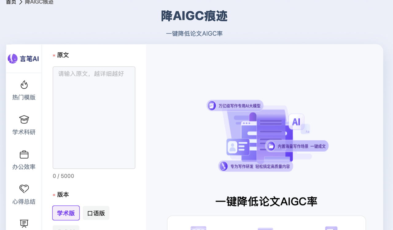 - 定位:看名字就知道,它是做“降重”起家的,现在顺势推出了降ai模块。